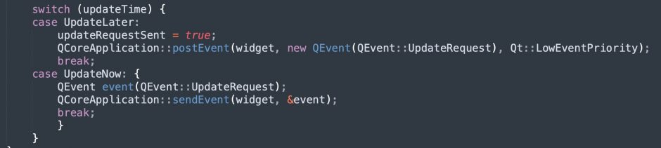 QCoreApplication发布一个QEvent::UpdateRequest事件。