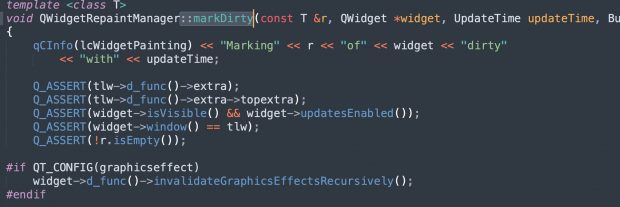 QWidgetRepaintManager::markDirty()中。