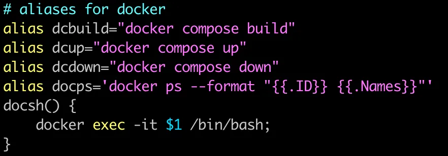 1. According to the lab instructions, add aliases for docker commands in the zsh user configuration file ~/.zshrc.