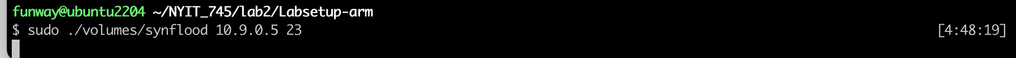 2. Start the program to launch SYN flooding attacks sudo ./volumes/synflood 10.9.0.5 23.