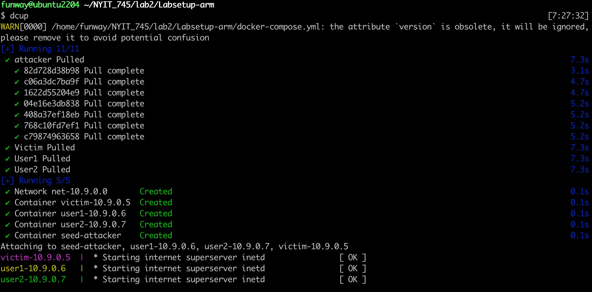 2. After installing the docker engine, go to the Labsetup-arm directory, where the docker-compose.yml file is located.