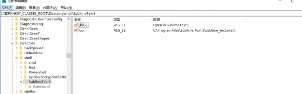 然后新建字符串值Icon=C:\Program Files\Sublime Text 3\sublime_text.exe,0 (路径改为你的sublime程序路径,这是在右键菜单中显示sublime图标)