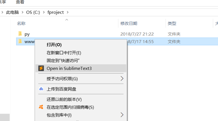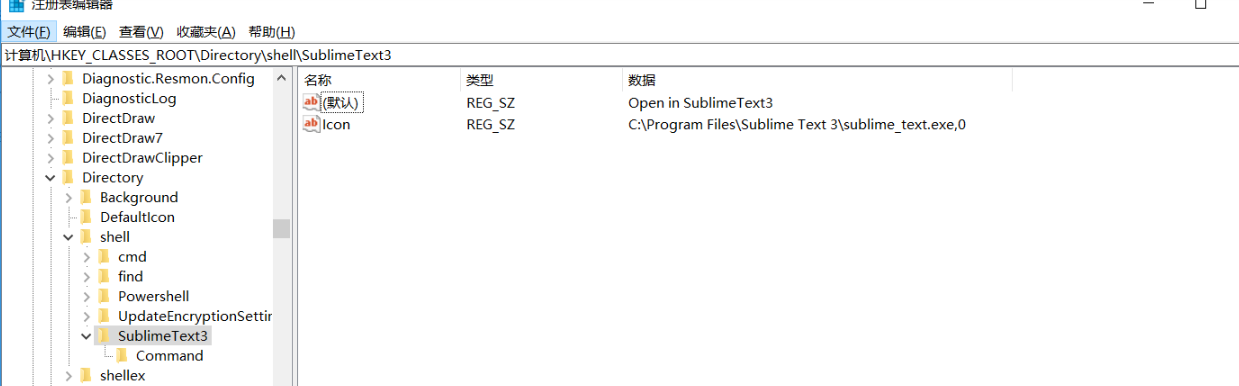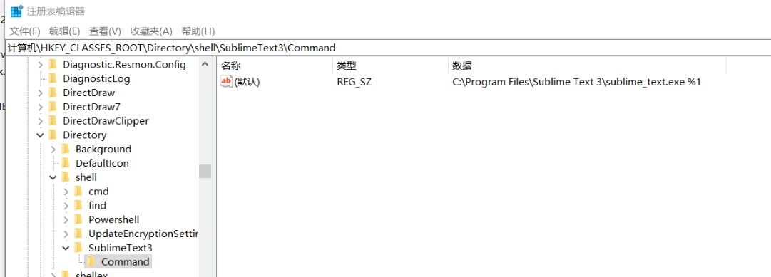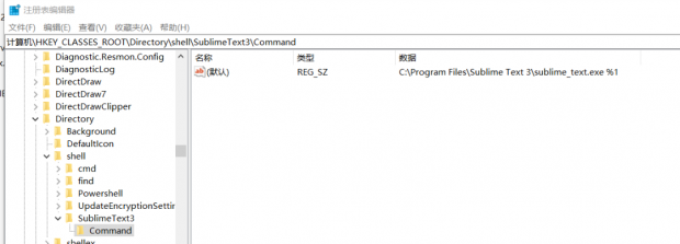 3、右键SublimeText3,在其下新建项Command,默认值为