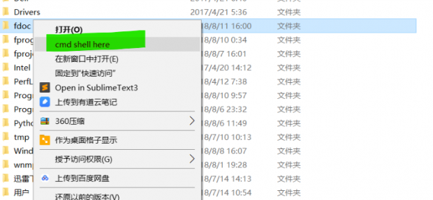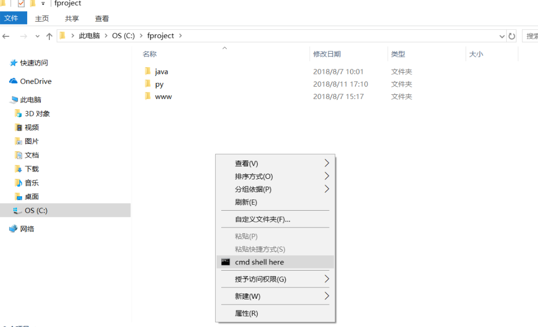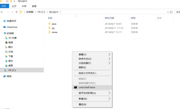 在文件夹空白背景的右键菜单添加“cmd shell here”