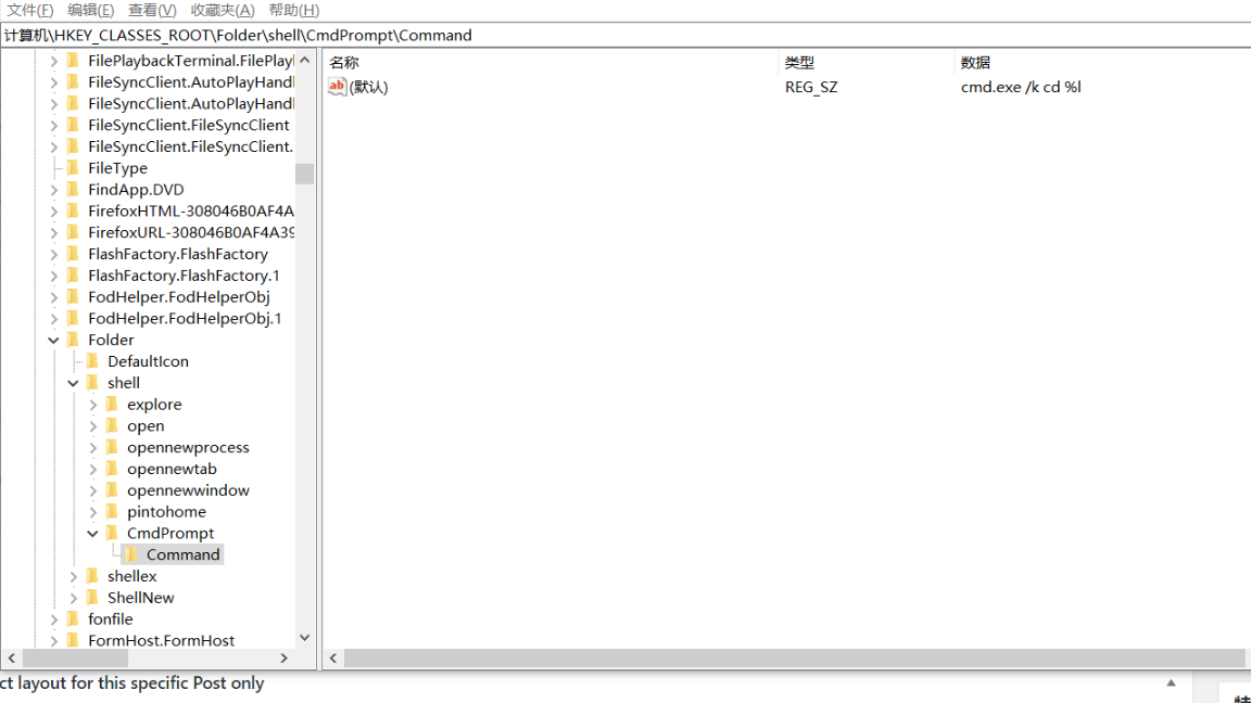 想在win的cmd跳到某个目录下,默认的做法都是打开cmd窗口,再cd到指定目录,这样太麻烦了。所以我们想要把cmd添加到右键菜单,点击后即在指定目录打开cmd。
