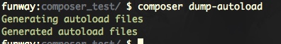 然后在项目根目录下执行命令 composer dump-autoload ,可以看到该命令执行结果就是生成了autoload files。