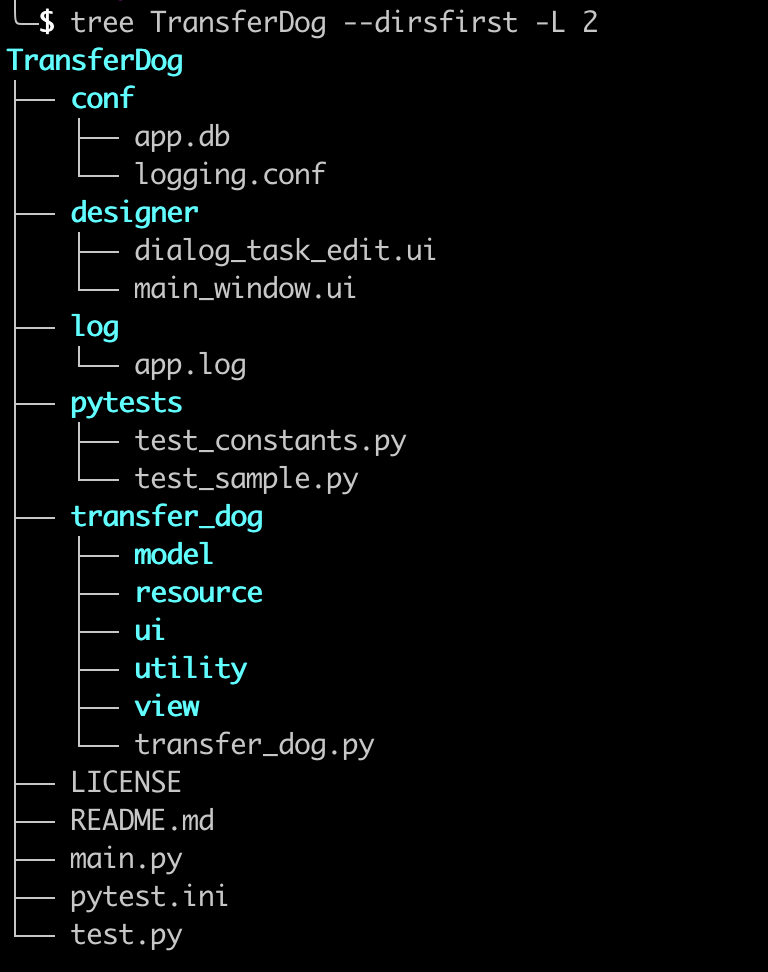 然后由这个 app 模块去执行真正的程序运行代码,比如初始化窗口等。在 package/app.py (在我上面的截图中是 transfer_dog/transfer_dog.py)中就可以直接 from package.view.main_window import MainWindow 来引入窗口类了。