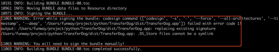今天在 macOS 下使用 pyinstaller 打包程序的时候,遇到一个 codesign 签名的错误。