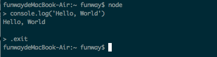 方法一:直接执行无参数的node命令,进入node命令行界面,打印Hello, World。