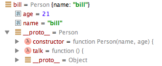 var bill = new Person('bill', 21); // 将Person用作构造函数来调用,创建bill对象