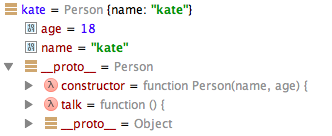 var kate = new Person('kate', 18); // 将Person用作构造函数来调用,创建kate对象