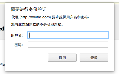 浏览器首次通过代理进行访问的时候会弹出要求输入用户名密码的对话框:
