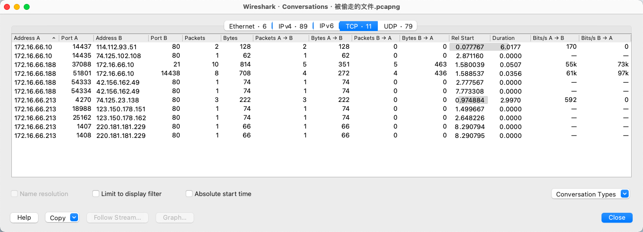 - 这题可以无脑做,直接使用 Wireshark 的节点统计功能。