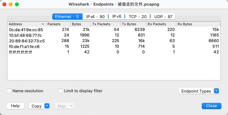 显示该捕捉文件中有哪些节点(或者叫端点吧 🤷♂️ )。