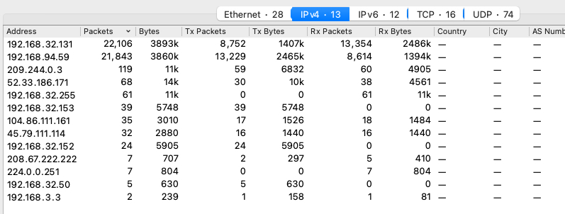 - ip.src eq x.x.x.x 筛选源 ip 地址为 x.x.x.x 的(eq 即 ==)