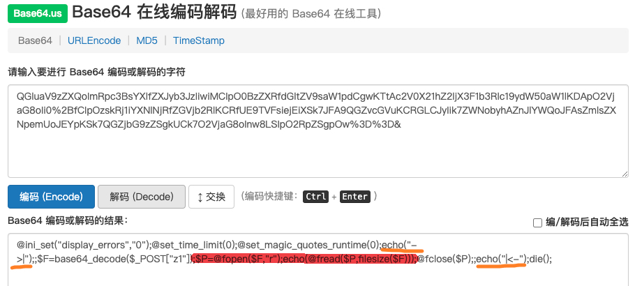 内容的 base64 编码是 PD9waHAgQGV2YWwoJF9QT1NUWzEyMzRdKTs/Pg==
