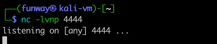 So, on that machine, we need to run the following command to start Netcat and listen for the reverse shell connection:nc -lvnp 4444