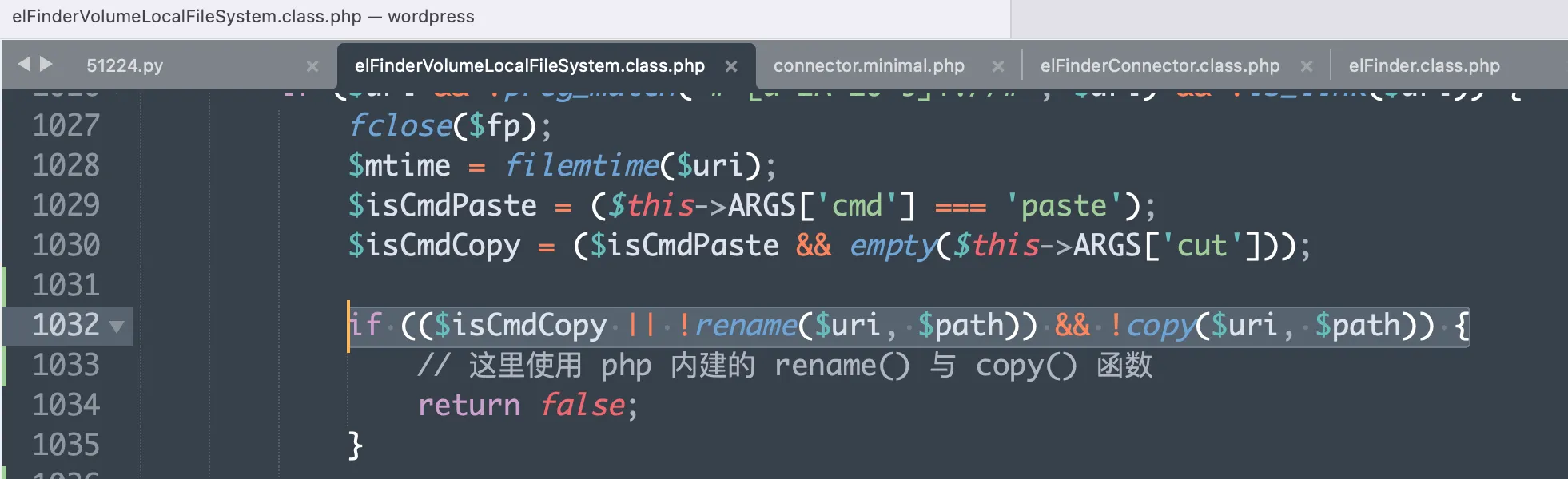 elFinderVolumeLocalFileSystem.class.phpfile, within theelFinderVolumeLocalFileSystem->_save()method, it first tries torename(), and if that fails, it attempts tocopy(). If both operations fail, it returnsfalse.